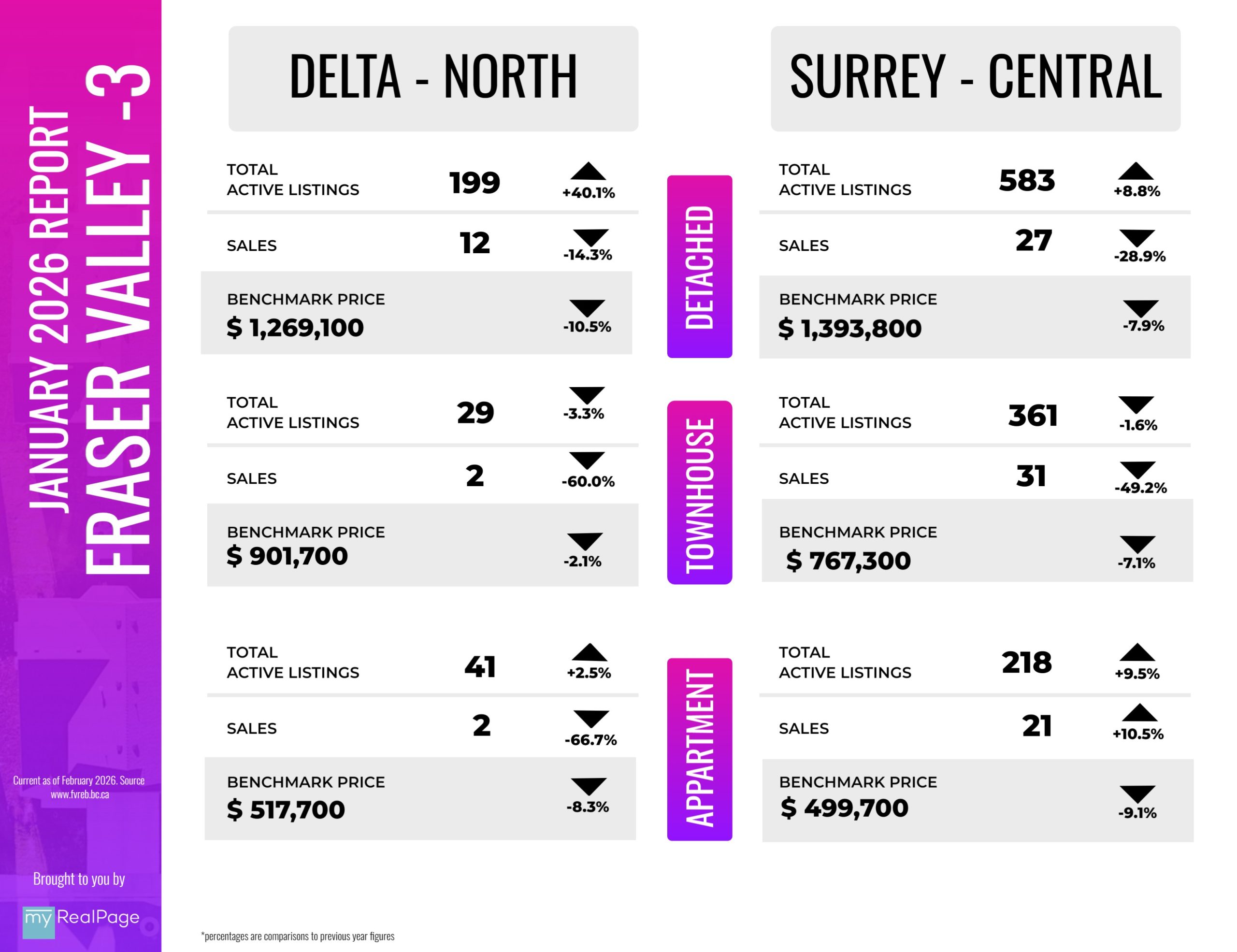 “Affordability concerns and economic pressures are weighing heavily on many Fraser Valley households,” said Tore Jacobsen, Chair of the Fraser Valley Real Estate Board. “Our REALTORS® understand how personal and complex these decisions are. But there are encouraging signs for buyers. Composite prices are closer to early-2023 levels, inventory has improved, and there is more space to negotiate than we’ve had in recent years.”